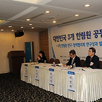 [제1회 정책연구위원회 회의장 전경] 한국과학기술한림원 정책연구소는 지난 7일 오후 한림원회관에서 '제1회 정책연구위원회'를 개최하고, 본격적인 과학기술 현안 연구에 돌입했다. 이번 위원회에는 김승조 위원장(기획정책담당 부원장 및 정책연구소장, 공학부 정회원)을 비롯해 성창모 부위원장(정책연구소 부소장, UNFCCC 기술집행기구 위원, 정책학부 정회원)과 김정회 위원(KAIST 교수, 농수산학부 정회원), 안영수 위원(연세대 명예교수, 의약학부 정회원), 최승복 위원(인하대 교수, 공학부 정회원), 김호성 한림원 사무처장, 김상철 한림원 정책연구팀장 등이 참여했다. 회의에서는 △정책연구소 운영 계획(안)과 △3개 한림원 연구·정책협의회 사업 등에 대한 보고와 △공동과제 이슈페이퍼 집필진 선정, △한림원 ..