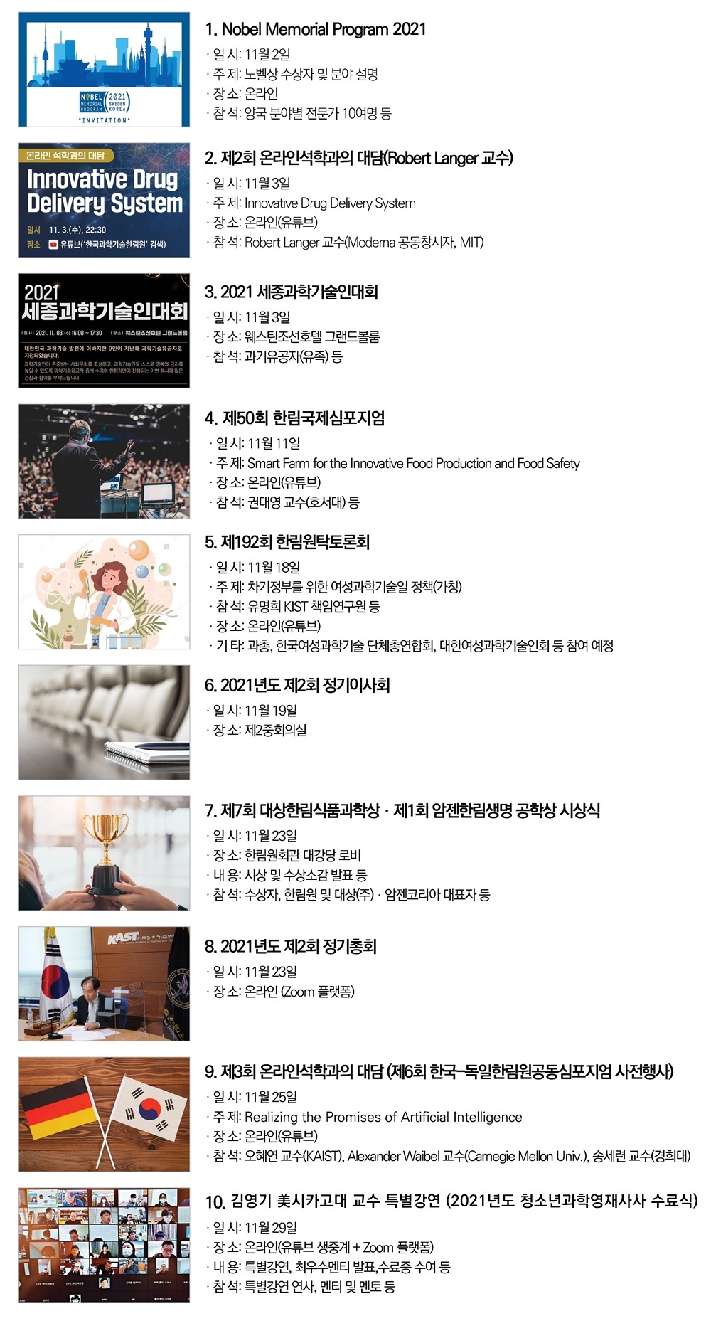 ※ 한국과학기술한림원의 11월 회의 및 행사 계획을 다음과 같이 안내합니다.