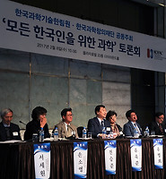 토론회에서는 김승조 기획정책담당 부원장(서울대학교 명예교수)과 민경찬 연세대학교 명예특임교수가 각각 ‘과학기술 발전을 통한 성장동력 창출과 삶의 질 향상’, ‘미래를 준비하는 과학기술혁신체계의 철학과 역할’ 등을 주제로 발표했다.