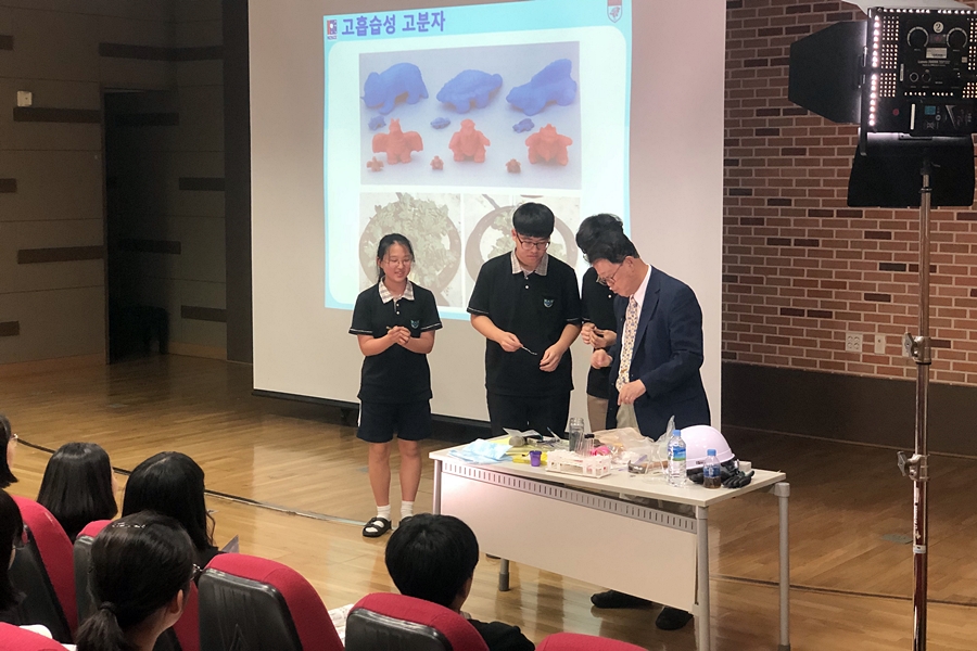 강연자로 참여한 진정일 고려대학교 명예교수(이학부 종신회원)는 '화학이 가져다 준 신비한 세계: 고분자 재료의 화학'을 주제로 열띤 강연을 펼쳐 학생들의 뜨거운 호응을 얻었다. 강연에는 세마고 1, 2학년 200여명이 참석했다.