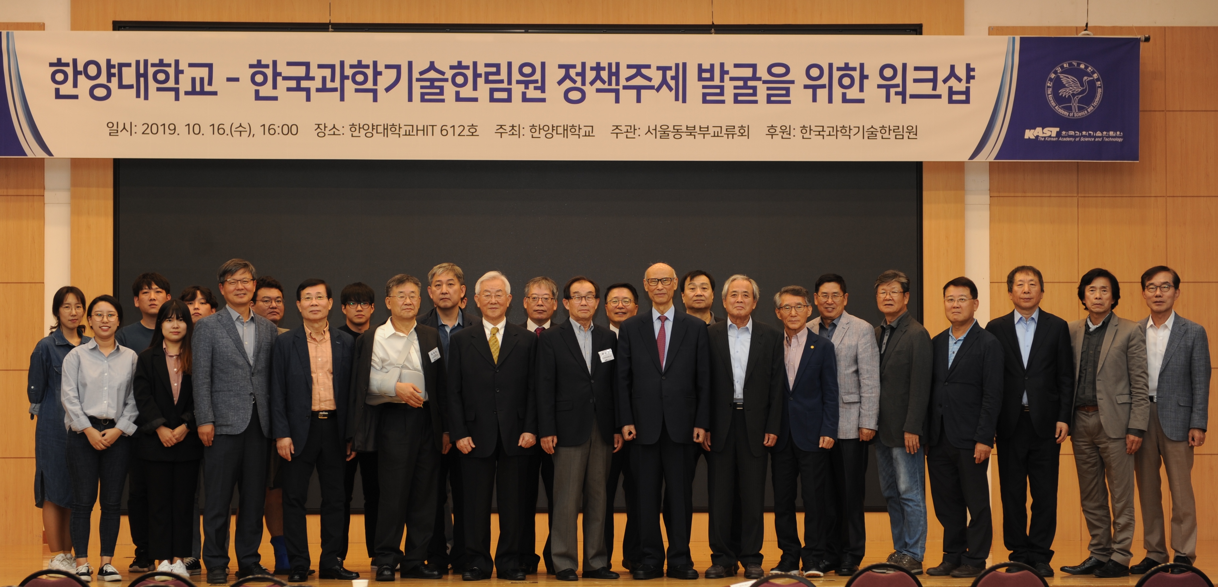 한국과학기술한림원과 한양대학교가 주최하고 한림원 서울동북부교류회(회장 임승순)가 주관한 '정책 주제 발굴을 위한 워크숍'이 지난 10월 16일 오후 한양대학교 HIT빌딩 6층에서 개최됐다. 행사에는 한민구 원장과 임승순 교류회장을 비롯한 서울동북부교류회 소속 한림원 회원 30여명이 참석해 열띤 논의와 토론을 진행했다.