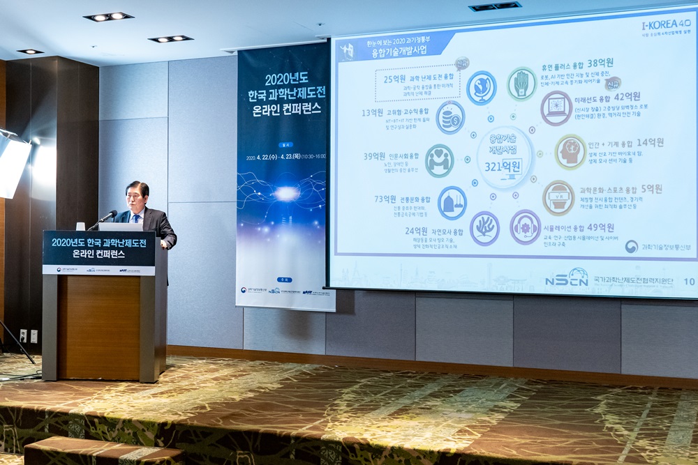 과학기술정보통신부(장관 최기영)와 한국과학기술한림원(원장 한민구·이하 한림원) 과학난제도전협력지원단(단장 성창모·이하 난제지원단)은 지난 4월 22~23일 이틀 간 서울 엘타워에서 ‘한국 과학난제도전 온라인 컨퍼런스’를 개최했다.